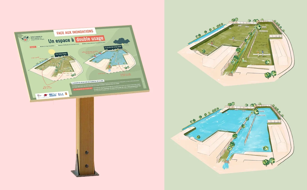 Élaboration d’un plan de communication permettant d’informer et sensibiliser la population au risque inondation. Suite à cela, différents outils ont été réalisés afin de sensibiliser le grand public et les scolaires.